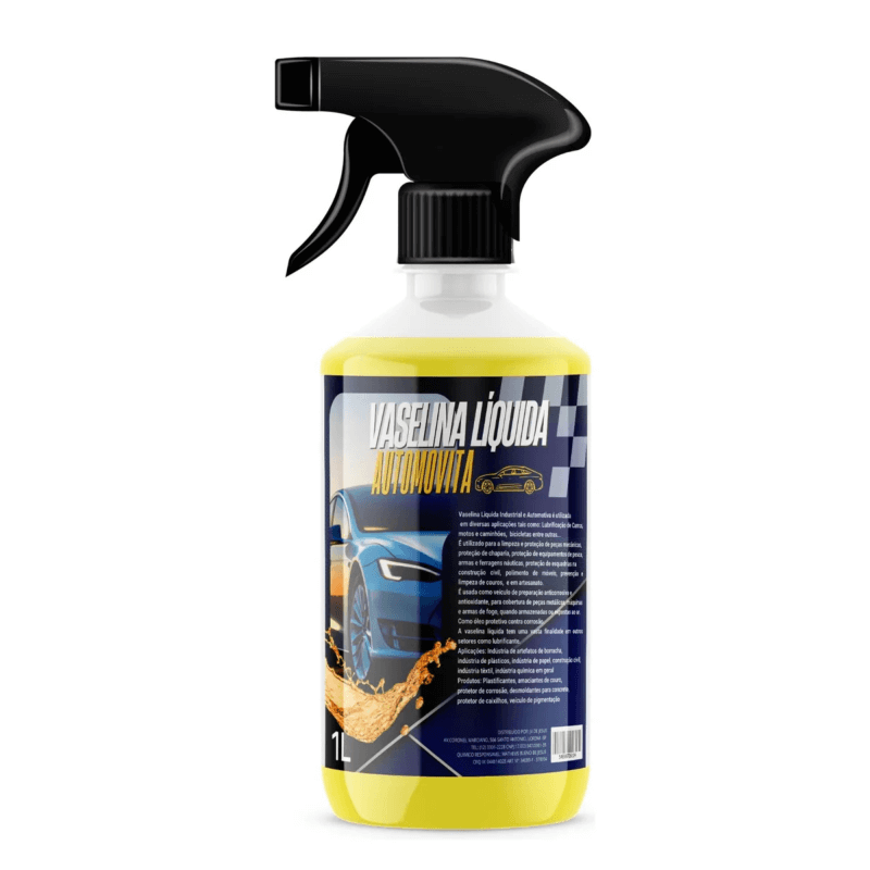 Vaselina líquida amarela de alta pureza, ideal para lubrificação, proteção e conservação de borrachas, plásticos, trilhos, articulações e componentes automotivos. Excelente espalhamento e rendimento.