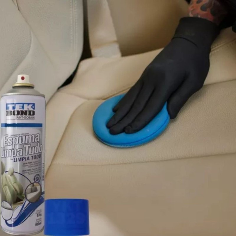 Espuma Limpa Tudo Tekbond: limpeza profunda para estofados, carpetes, couro e plásticos. Remove sujeira, manchas e odores. Ideal para uso automotivo e doméstico.