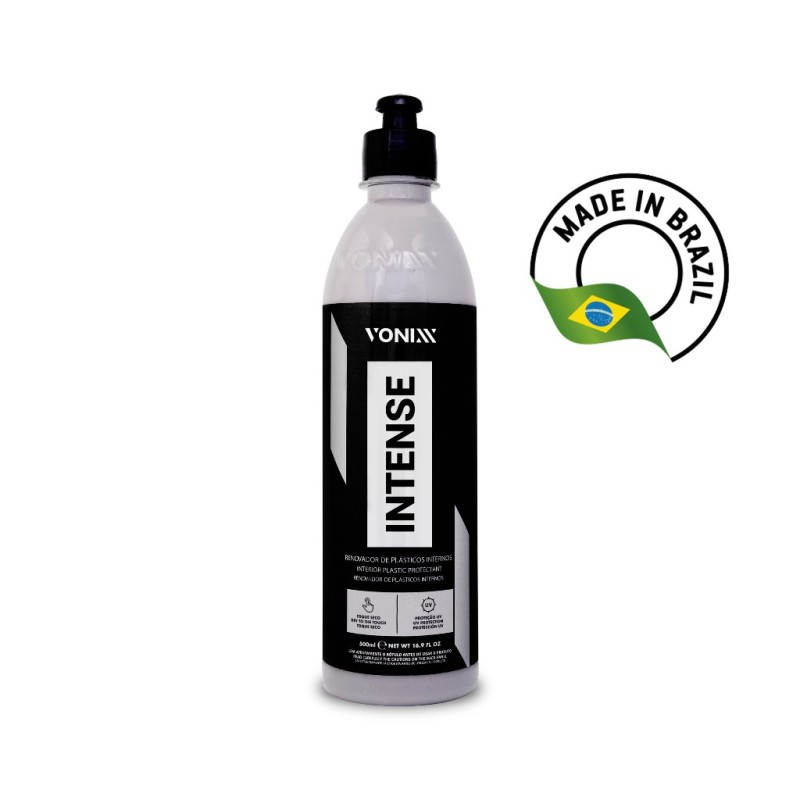O Intense Vonixx 500mL é um protetor e hidratante premium desenvolvido especialmente para plásticos, painéis, vinil e borrachas internas. Sua fórmula avançada revitaliza, protege e devolve o aspecto de novo, deixando um acabamento elegante sem deixar a superfície pegajosa.