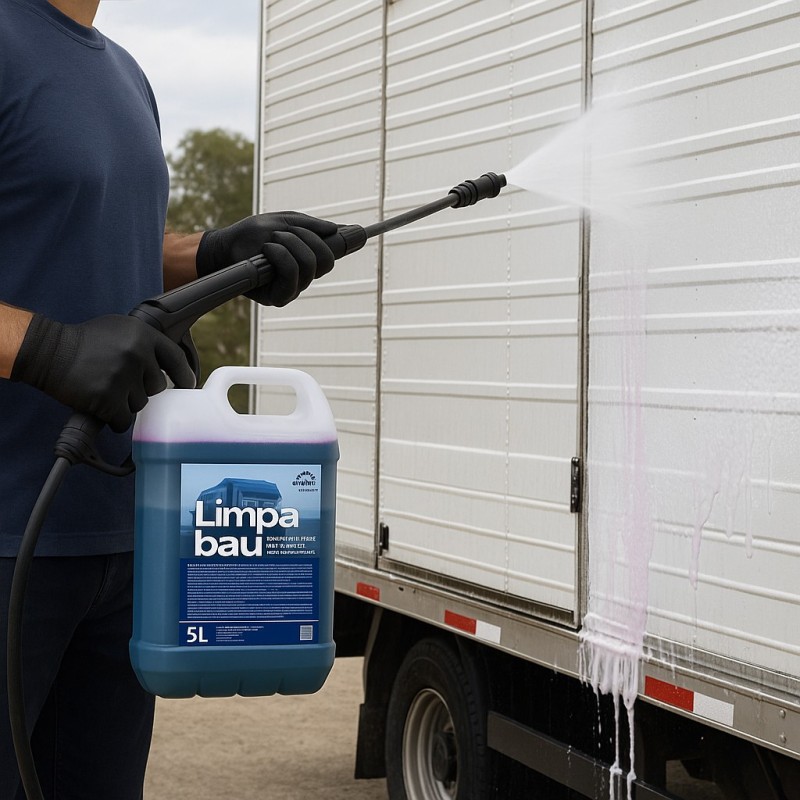 O Limpa Baú Roxo Concentrado 1/50 – 5 Litros é um detergente profissional de alta performance desenvolvido para limpeza profunda de baús de caminhões, chassis, carrocerias, laterais e superfícies expostas a sujeira extrema.