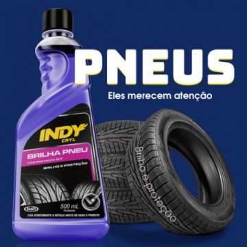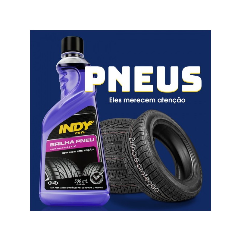 Brilha Pneu INDY 500ml: pretinho automotivo com brilho molhado, renovação da cor e proteção contra ressecamento. Ideal para estética automotiva e lava jato.