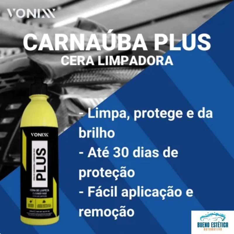 A Carnaúba Plus Vonixx 500mL é uma cera limpadora automotiva desenvolvida para renovar o brilho, remover sujeiras resistentes, reduzir microimperfeições e proteger a pintura com a ação natural da cera de carnaúba.