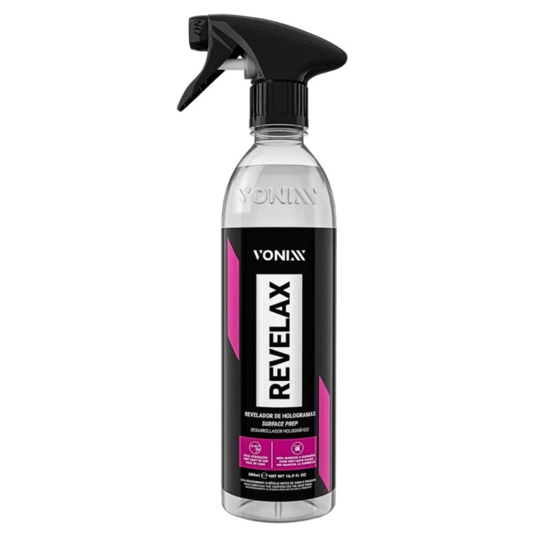 O Revelax Vonixx 500mL é um revelador de hologramas desenvolvido para auxiliar profissionais de estética automotiva na inspeção visual da pintura durante e após o processo de polimento.
