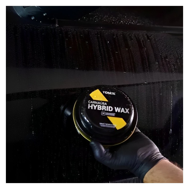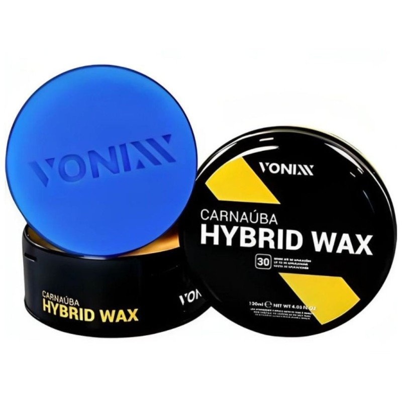 Vonixx Hybrid Wax é uma cera que combina carnaúba e polímeros sintéticos, proporcionando o brilho da cera de carnaúba e a proteção e repelência dos polímeros sintéticos.