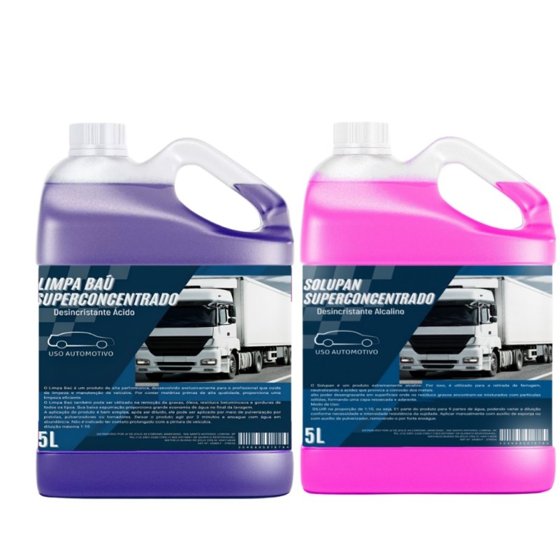 Desfrute da poderosa combinação do Kit Solupan Concentrado e do Limpa Baú, dois produtos de alta performance projetados para atender às necessidades de limpeza e manutenção de veículos, sejam carros, motos ou caminhões.