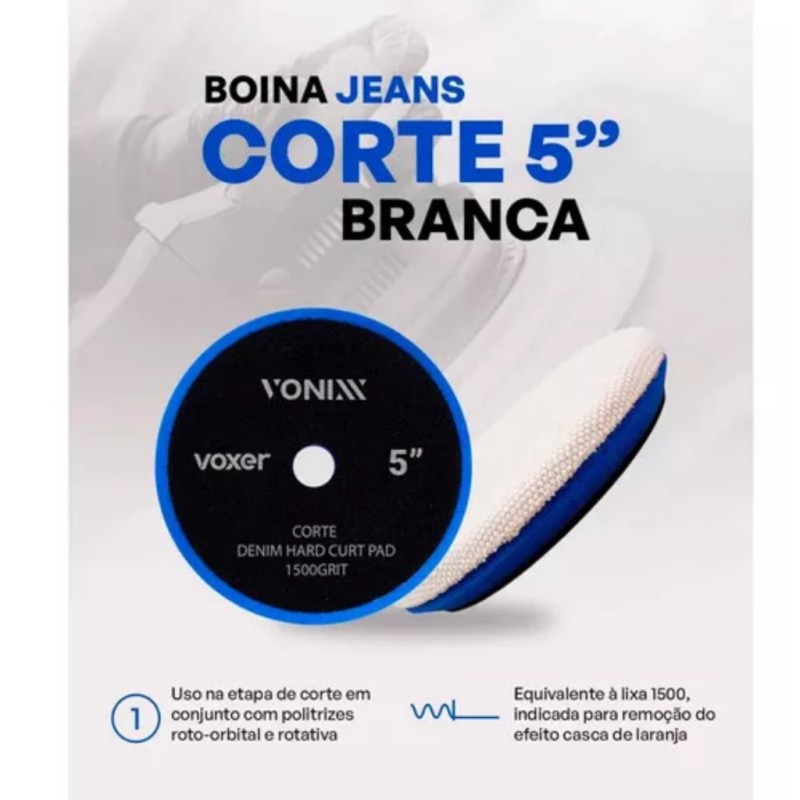 A Boina Jeans Voxer Branca de 5" é a solução ideal para profissionais que buscam um corte eficiente com acabamento refinado. Projetada com materiais exclusivos, ela combina alto desempenho e durabilidade, sendo perfeita para processos de polimento.