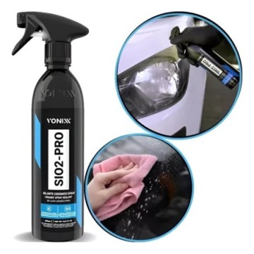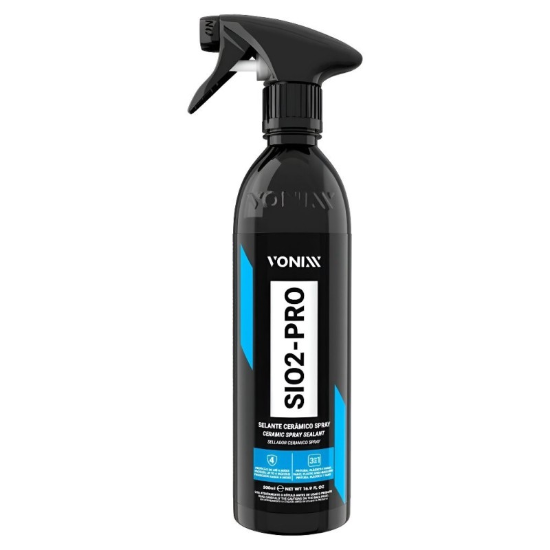 VITRIFICADOR SIO2 - PRO VONIXX 500ML Os vitrificadores a base de silício protegem a pintura do carro por muito tempo e tem várias características espetaculares, porém, o produto tem o mesmo toque de um vidro, ou seja, a superfície não fica com o toque aveludado como o deixado pelas ceras e selantes. Em virtude disso, desenvolvemos SiO2-PRO, um produto exclusivo, desenvolvido especialmente para manutenção de superfícies tratadas por vitrificadores. O produto poderá ser utilizado a cada 30 ou 45 dias na manutenção de superfícies que foram tratadas com V-Plastic (plásticos), V-light (faróis e lanternas), V-Paint (pintura) e V-Energy (motor). Sua formulação balanceada, contém silanos e siloxanos de cadeia longa, que são polímeros derivados do elemento químico silício. Essa composição, promove uma incrível hidrorepelência, e melhora significativamente o acabamento dessas superfícies. O produto deixa um toque aveludado e reduz consideravelmente o coeficiente de atrito, diminuindo as chances de riscos nessas superfícies, além de prolongar a vida útil das superfícies vitrificadas. DILUIÇÃO Pronto uso. - HIDROREPELENTE - PROTEÇÃO DE ATÉ 4 MESES MODO DE USAR: 1 - Certifique-se que a superfície esteja limpa e seca. 2 - Agite bem o produto antes de usar. 3 - Pulverize uma pequena névoa do produto na superfície em uma área máxima de 60cm x 60cm 4 - Faça acabamento utilizando uma toalha de microfibra limpa e seca virando-a frequentemente até obter o resultado desejado. Caso ocorra manchas, repita o procedimento anterior.