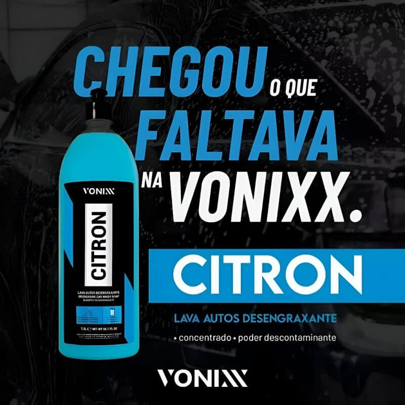 Citron é um lava autos desengraxante. Sua fórmula contém tensoativos especiais e solventes naturais extraídos de cascas de laranja. É ideal para lavagem pesada de veículos, atuando na remoção de graxa, matéria orgânica e ceras, auxiliando na limpeza profunda da pintura do automóvel.