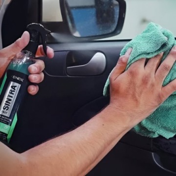 3. Remover o excesso com auxílio de toalha de microfibra úmida. Secar em seguia com uma toalha de microfibra seca.