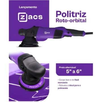POLITRIZ ROTO-ORBITAL 5” ZACS - A Politriz Roto-Orbital 5” Zacs possui potência de 900W e alto torque. - INdicada para realização de polimento de pinturas em geral com deslocamento de 15mm. - Proporciona praticidade na mudança de velocidade em 6 níveis. - É leve e permite um trabalho com maior segurança. -Possui ajuste de velocidade prático e rápido. - Slot para escova de carvão de fácil substituição. Características: Compacta; Leve; Robusta; Fácil Manuseio;