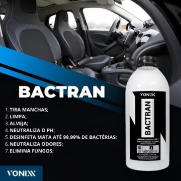 Descrição: Conheça o Bactran VONIXX, o limpador bactericida ultra concentrado que transforma a limpeza de estofados, carpetes e tapetes. Ideal para uso com extratoras, ele garante