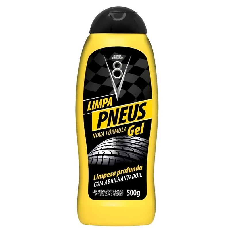 O Limpa Pneus V8 conserva, evita o ressecamento e dá brilho aos pneus e artigos de borracha de seu veículo deixando a superfície com aspecto de nova.