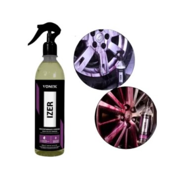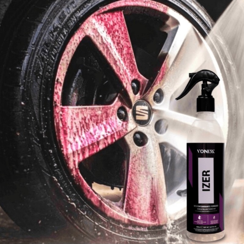 Izer é um descontaminante ferroso de pH neutro que remove fuligem de freio oxidado em rodas, age na eliminação de oxidação de material ferroso da pintura e demais partes externas do veículo e ajuda na
