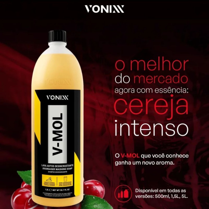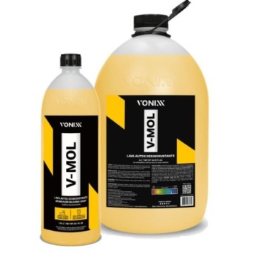 V-Mol é um lava autos biodegradável com pH levemente básico que não agride a superfície. Ideal para lavagem de automóveis, em especial para remoção de sujeiras mais difíceis, como remoção de barro e óleo.