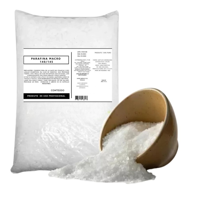 Aviso Importante: Por favor, observe que a Parafina Macro 140 é uma matéria-prima destinada exclusivamente para uso na fabricação de velas. Não nos responsabilizamos por formulações específicas ou pela utilização inadequada do produto.