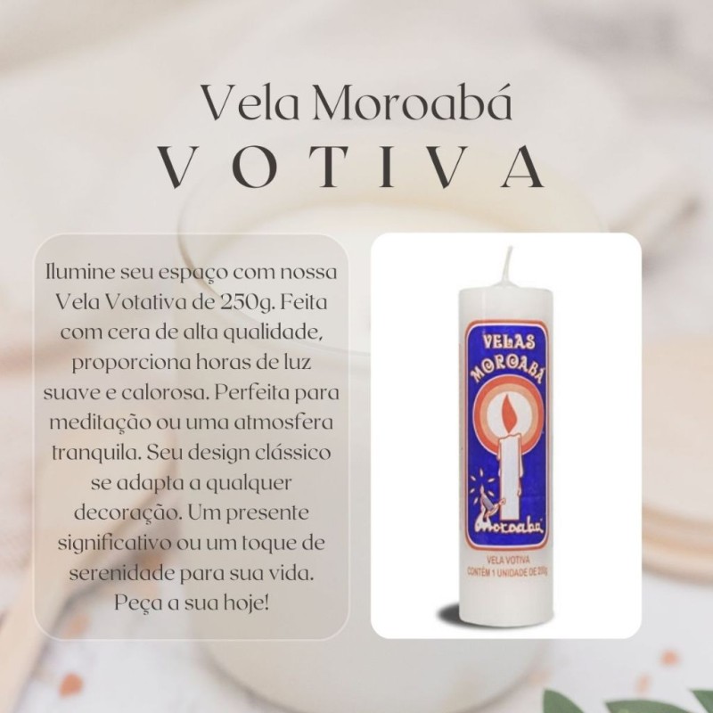 Faça o pedido agora e deixe que a Vela Votativa de 250g ilumine seu caminho para momentos de paz e reflexão.