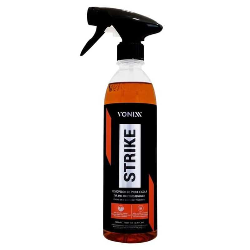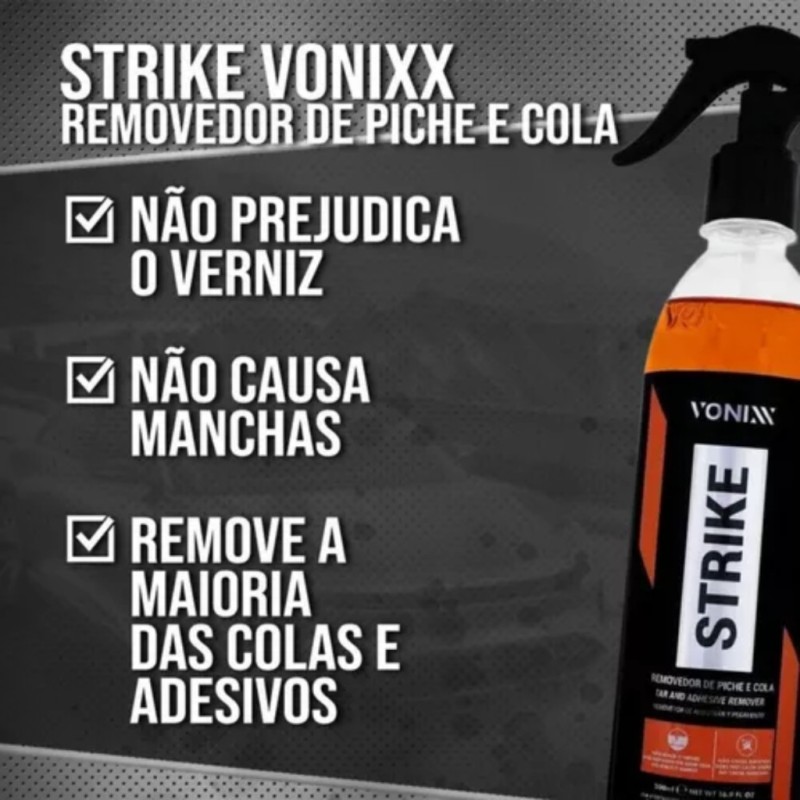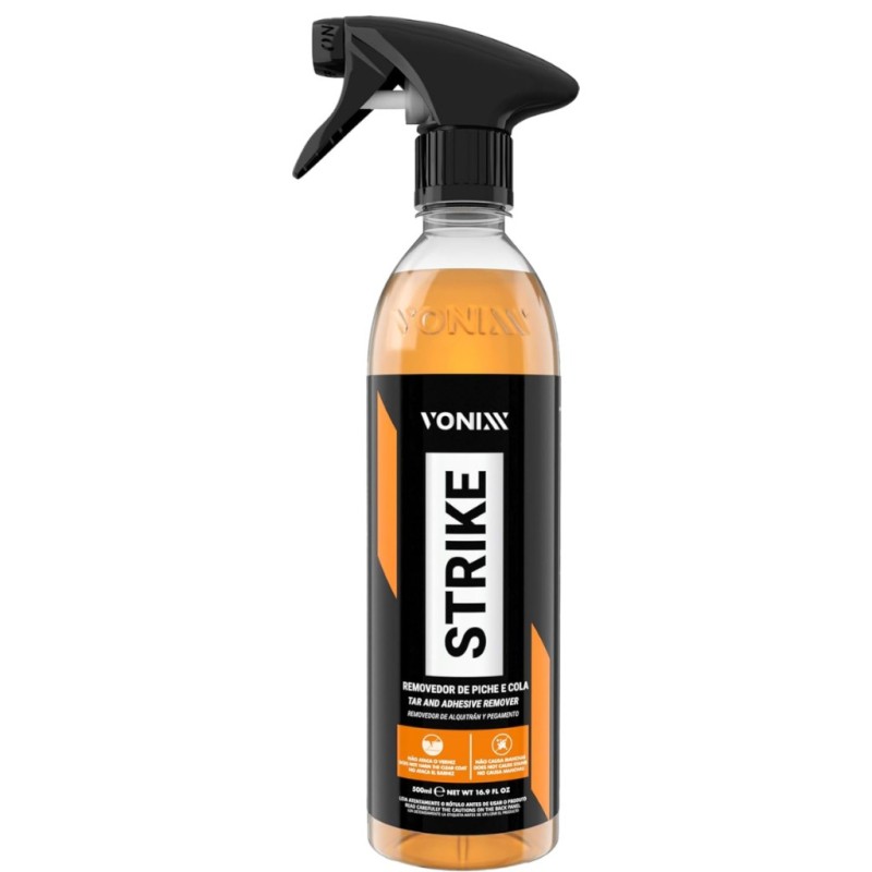 Strike é um produto de fórmula balanceada que age na remoção de piche e da maioria de resíduos de colas de adesivos e etiquetas autocolantes em geral.