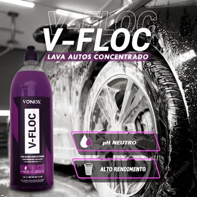 O V-FLOC é um lava autos de alta performance com pH neutro, projetado para oferecer uma limpeza suave e eficiente. Sua fórmula avançada incorpora ag