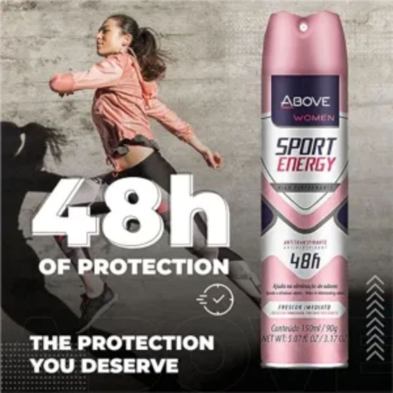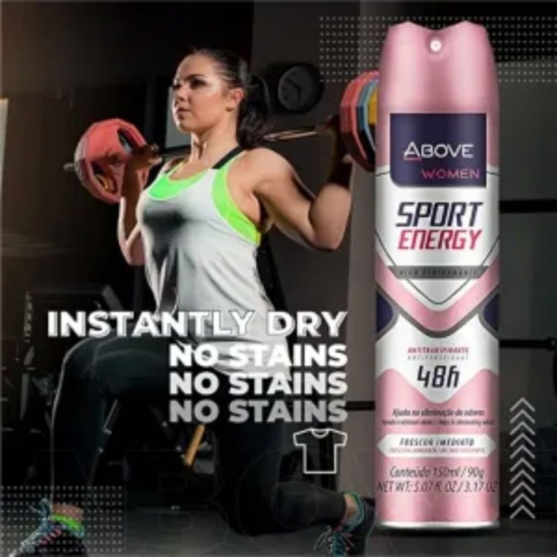 Tecnologia Antitranspirante: A fórmula avançada do Desodorante Sport Energy mantém você fresco e seco, mesmo durante os treinos mais intensos.